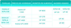 - Acreditar un ahorro mínimo de 30 a 80 UF en la cuenta de ahorro para la vivienda.